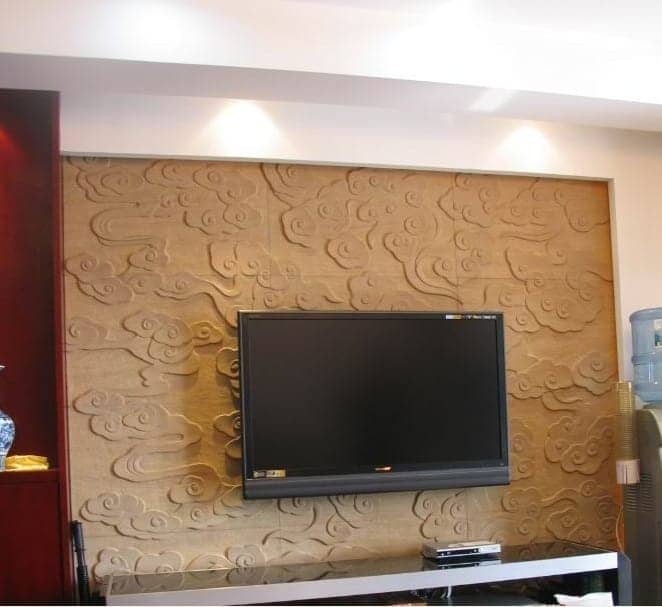 砂巖是一種無光污染,無輻射的優(yōu)質(zhì)天然石材,對人體無放射性傷害。很多設(shè)計師都將它應(yīng)用于沙發(fā)背景、電視背景墻的裝飾。在客廳用紋理粗獷的砂巖鑲嵌出一面仿古意味的主體墻作電視背景墻,既可以吸音,又能烘托出家電的金屬質(zhì)感,形成強烈的對比,十分具有現(xiàn)代感,又透露出一種視覺上的愉悅, 能體現(xiàn)主人的個性與 品味的。