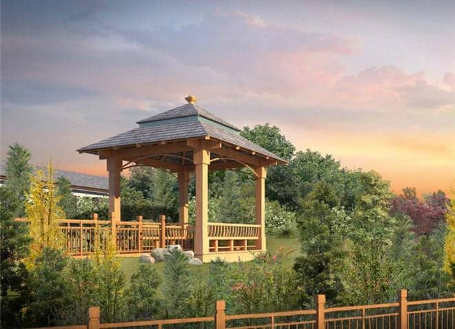 在搭建涼亭之前,要首先測量自家院子的大小,是否還有空間可以容納下一個(gè)涼亭。涼亭的大小也需要與院子大小比例相協(xié)調(diào),這樣更相得益彰。在院子里為涼亭選址時(shí),建議是選擇平地活著是臨水的地方,有些獨(dú)棟別墅也可以建造在半山坡上。