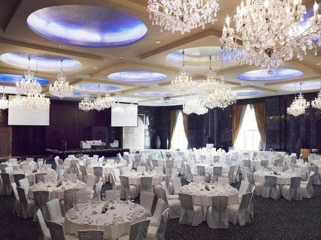 (3)酒店婚宴區(qū):假如這是酒店的主要的經(jīng)濟(jì)體系,那就可以將裝飾燈具充分發(fā)揮在這些地方,利用好這些裝飾品位新人增添整體的氛圍?;檠鐓^(qū)同樣在高度上還是有要求的太矮顯得壓抑,空間的大小決定桌椅的擺放量,解決方法可以采用隔斷的方案。