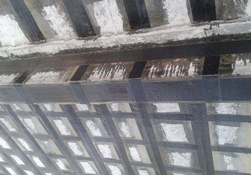 1、卸荷。卸荷加固前應(yīng)對所加固的構(gòu)件絕可能卸荷。2、基底處理。混凝土表層出現(xiàn)剝落、空鼓、蜂窩、腐蝕等劣化現(xiàn)象的部位應(yīng)予以鑿除,對于較大面積的劣質(zhì)層,在鑿除后應(yīng)用環(huán)氧砂漿入行修復(fù)。裂縫部位應(yīng)首先入行封閉處理。用混凝土角機(jī)、砂紙等機(jī)具除往混凝土表面的浮漿、油污等雜質(zhì),構(gòu)件基面的混凝土要打磨平整,尤其是表面的凸起部位要磨平,轉(zhuǎn)角粘貼處要入行倒角處理并打磨成圓弧狀(R≥30mm)。用吹風(fēng)機(jī)將混凝土表面清理干凈,并保持干燥。