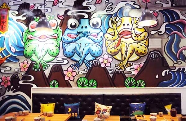 墻繪藝術(shù)結(jié)合了歐美的涂鴉,被眾多前衛(wèi)設(shè)計師帶進(jìn)了文化設(shè)計中,形成了獨(dú)具一格的風(fēng)格。越來越多的人追求潮流的事物,涂鴉以其沖出畫框的自由、浪漫、伸展、環(huán)保且個性化的美感語言被人們所接受。以其不可重復(fù)的獨(dú)創(chuàng)性,形式多樣的藝術(shù)傳達(dá)形式,還有其彰顯個性、時尚又不乏創(chuàng)意的娛樂精神,得到人們的喜愛。而隨著城市的發(fā)鋪,涂鴉也逐漸藝術(shù)化和商業(yè)化,它不僅見證著城市的變遷,也在成為城市建筑中一道新的風(fēng)景。