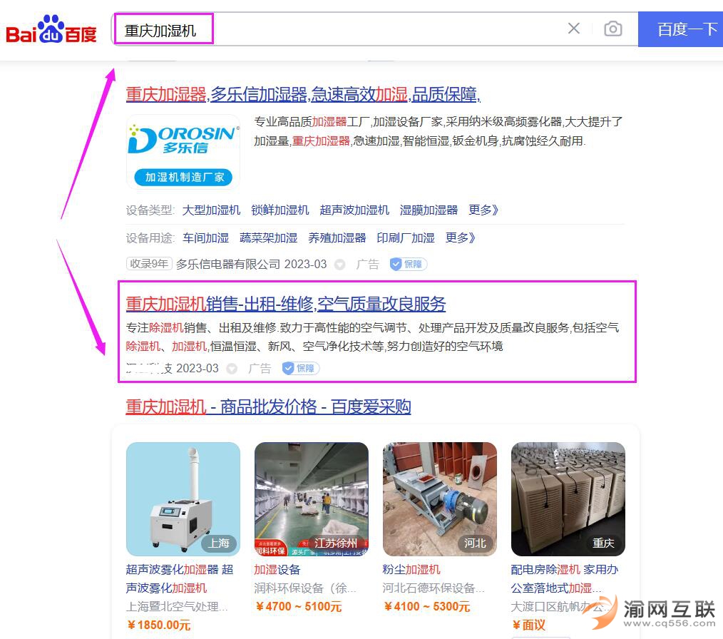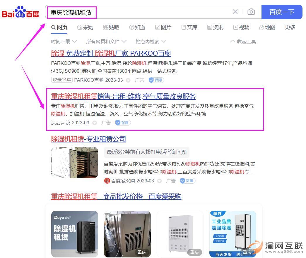 百度雙端推廣(截圖PC端),上線第四天,目前已經(jīng)基本穩(wěn)定,主詞+副詞(不僅第一頁顯示,內(nèi)頁也會有展現(xiàn)),感謝嚴(yán)總的信任!