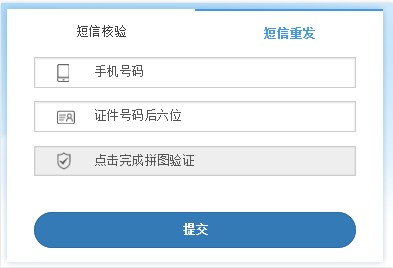 4.3依次填寫(xiě)驗(yàn)證信息(手機(jī)號(hào)碼、證件號(hào)碼后六位)并完成圖形驗(yàn)證,點(diǎn)擊【提交】,即可實(shí)現(xiàn)手動(dòng)重發(fā)