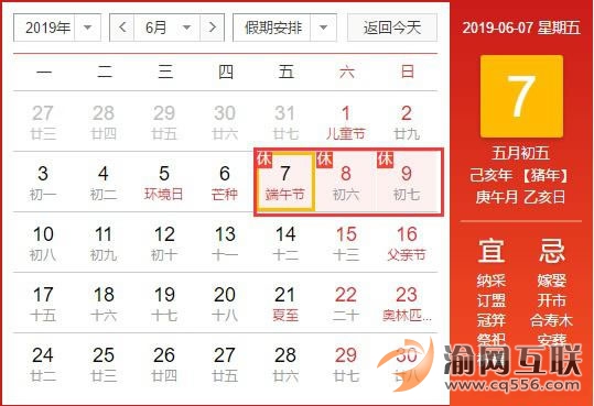 2019年端午“小長(zhǎng)假”放假時(shí)間表