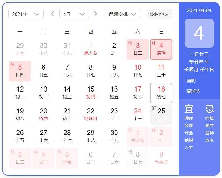 2021年4月3日-4月5日放假,4月6日恢復上班