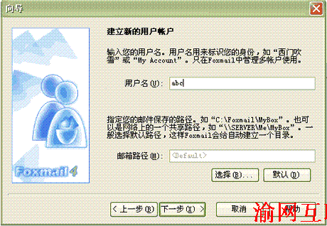 3.點(diǎn)擊下一步彈出以下窗口,在用戶名處填入您喜歡的名字,如:abc;