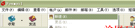2.如下圖所示,點(diǎn)擊帳戶 -> 新建,彈出Foxmail用戶向?qū)?