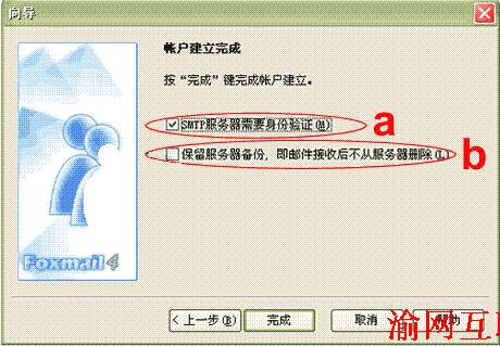 為了安全保密起見(jiàn),建議您不要在服務(wù)器上備份您的郵件,請(qǐng)不要將b處前面的鉤打上。