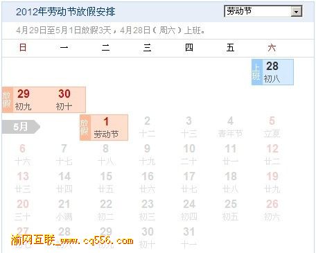根據(jù)《國(guó)務(wù)院關(guān)于修改〈全國(guó)年節(jié)及紀(jì)念日放假辦法〉的決定》,浙江網(wǎng)站建設(shè)公司渝網(wǎng)互聯(lián)“五一”國(guó)際勞動(dòng)節(jié)放假安排如下:“五一”國(guó)際勞動(dòng)節(jié):4月29日—5月1日放假,共3天。4月28日(星期六)正常上班。